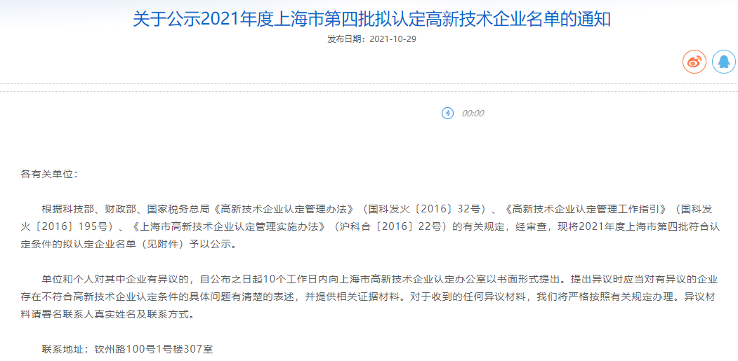 2021年10月29日,根据科技部、财政部、国家税务总局《高新技术企业认定管理办法》(国科发火〔2016〕32号)、《高新技术企业认定管理工作指引》(国科发火〔2016〕195号)、《上海市高新技术企业认定管理实施办法》(沪科合〔2016〕22号)的有关规定,上海市高新技术企业认定指导小组公示了2021年度上海市第四批符合认定条件的拟认定企业名单。凭借先进的科研技术和创新能力,上海太泽科技股份有限公司荣登榜单。